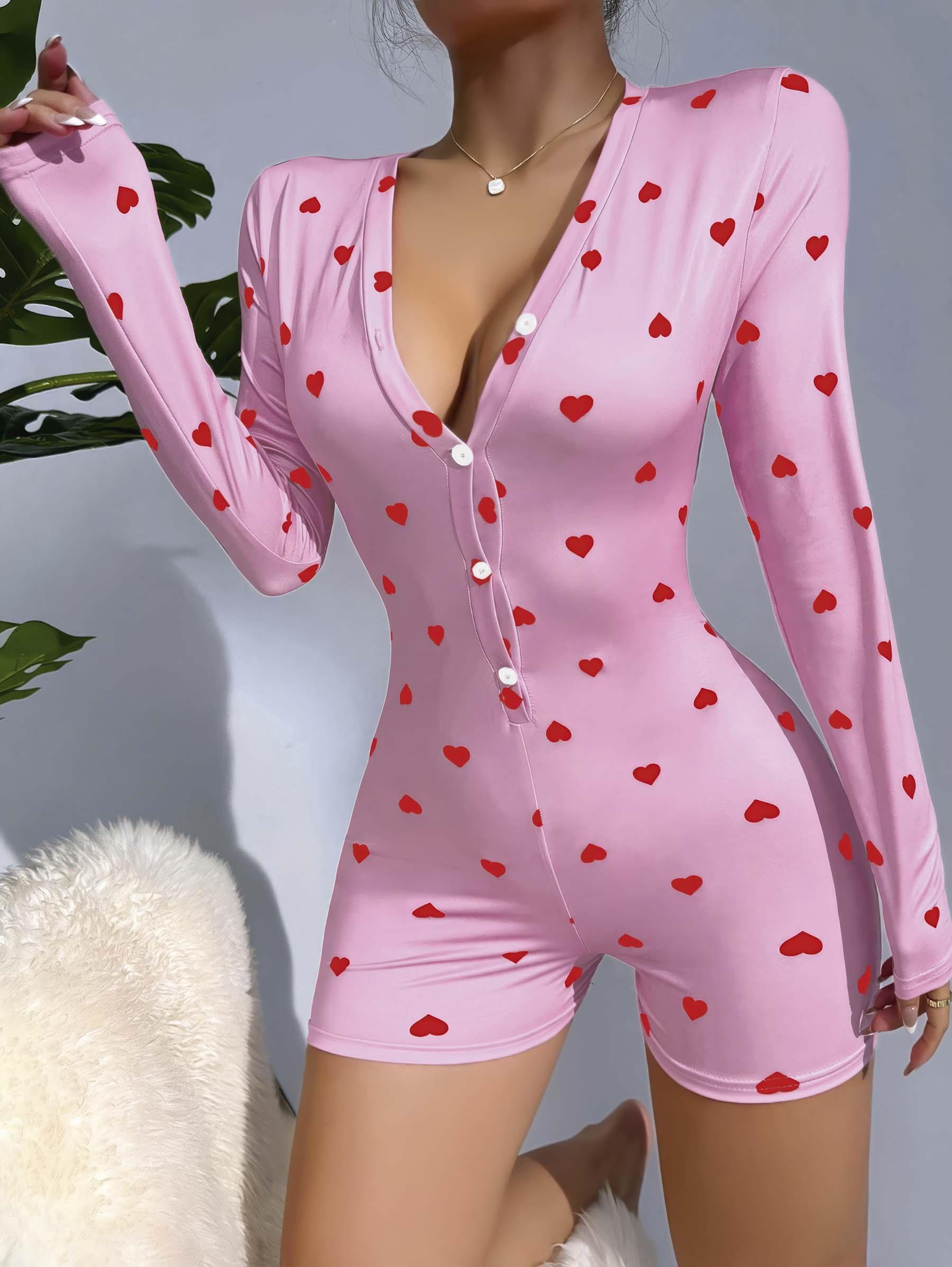 Kadın Pembe Kalp Desenli Pijama Tulumu 5121