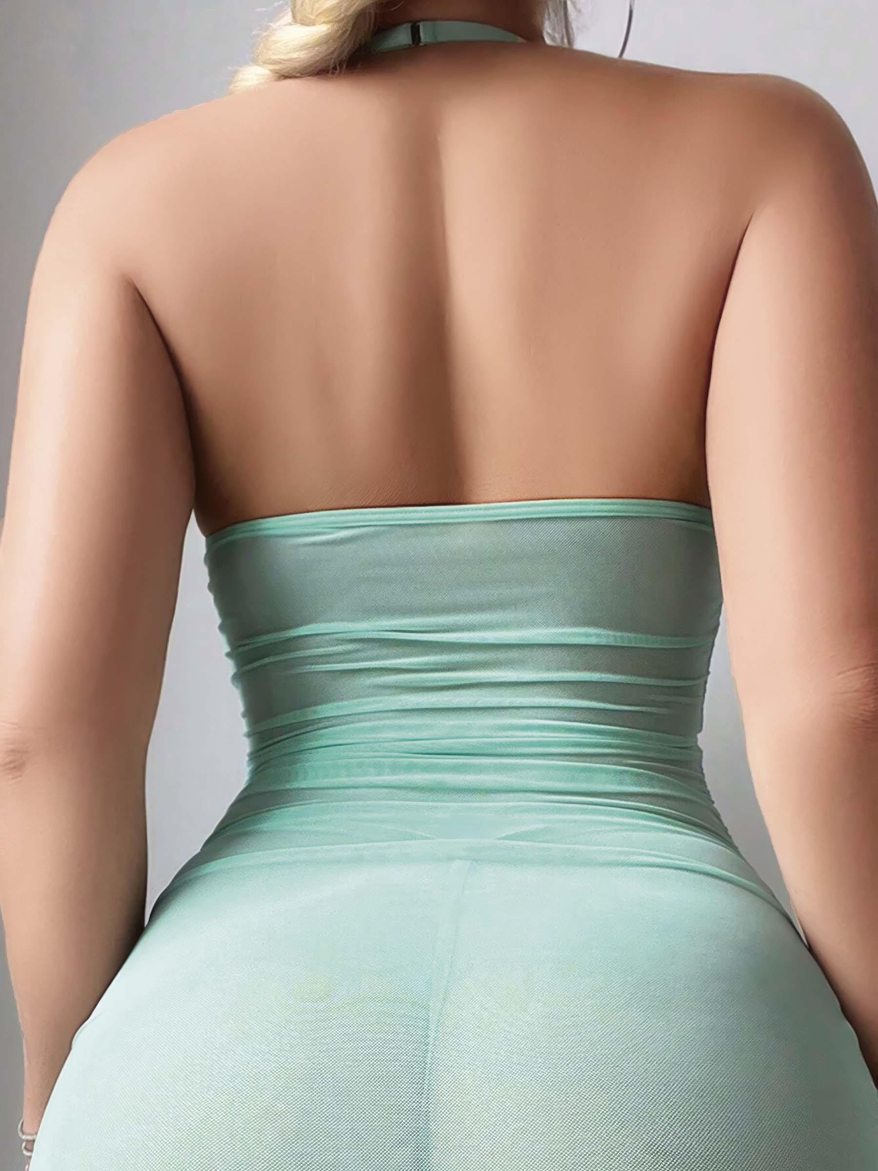 Kadın Yeşil Tül Kalp Detaylı Fantezi Gecelik 2173